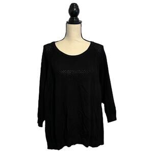 Lane Bryant Woman's Size 22/24 Black Knit Pullover Sweater with Crochet Cutouts