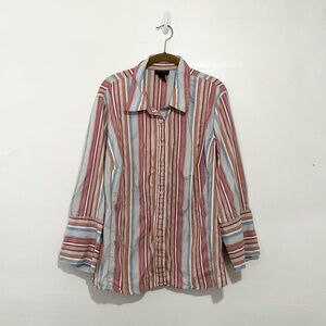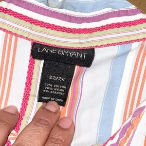 LANE BRYANT Women Button Down Shirt Striped Multi Color 3/4 Sleeve Size 22/24