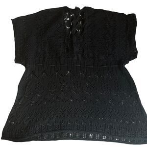 LANE BRYANT Women Sz 18/20 Black Dolman Sleeve Knit Eyelet V-Neck Top Drawstring