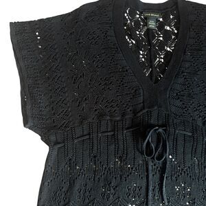 Elevate your wardrobe with this chic Lane Bryant black knit eyelet top. Designed with dolman sleeves and a flattering V-neckline, this versatile piece features an adjustable drawstring waist for a customized fit. The lightweight open-knit eyelet design makes it perfect for layering in any season.