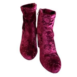 LANE BRYANT Women's Size 10W Red Wine Crushed Velvet Chunky Heel Ankle Booties. Side Zip Closure. Excellent Condition. Ships within 24 hours.