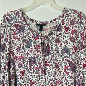LANE BRYANT Women’s Tunic Top Sz 26Mixed Print Peasant 3/4 Sleeve NWT