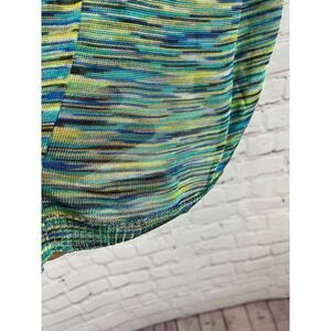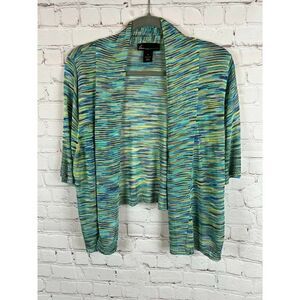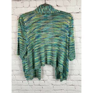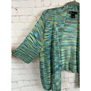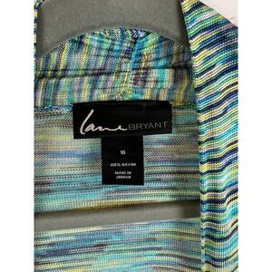 LANE BRYANT blue green black yellow striped knit open front cardigan sweater 16