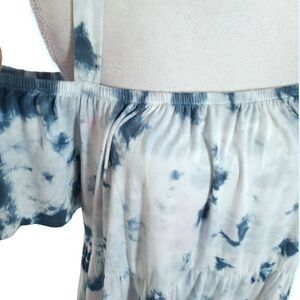 Off-the-shoulder with flutter sleeves. Tank straps. Jersey knit. Slightly longer length is perfect for added coverage with skinny jeans and leggings.