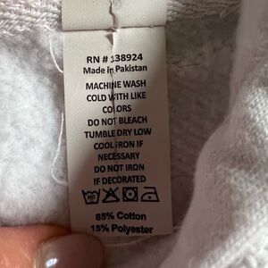 White cropped hoodie from Lane Seven in a size medium. This hoodie features a picture of money and luxury items on the front. It is perfect for any boujee lady in your life! The hoodie also features a rough hem. It was purchased at a high end boutique. This hoodie has only been worn once and is in excellent preloved condition with no flaws.