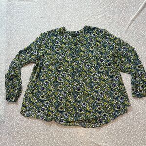 LANE BRYANT 22/24 Sheer Long Sleeve Green Blue Floret Floral Blouse NWT 22 24