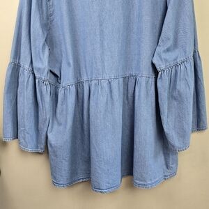 LANEBRYANT Chambray Bell Sleeve V-neck Blouse Blue Womens Plus Sz 18/20