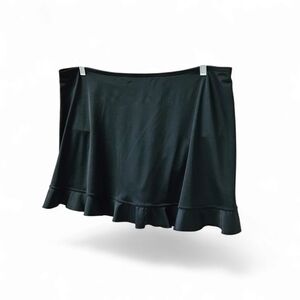 Like New Women's Plus Size Black Ruffle Hem Mini Swim skirt With Built In Brief. No damage. This was mine & I removed Size tag with Material tag. It was scratchy. Great for swimming or just wearing with a tank top.