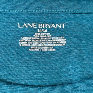 LaneBryant teal shirt with gold pineapple print throughout. Rounded neckline and Short sleeves.