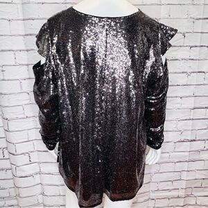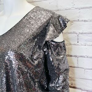 LANE BRYANT Cold Shoulder Lined Gunmetal Sequin V-Neck size 26