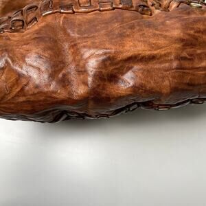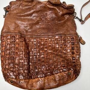 LANGELLOTTI Brown Woven Italian Leather Tote Hobo Handbag Large Distressed Boho