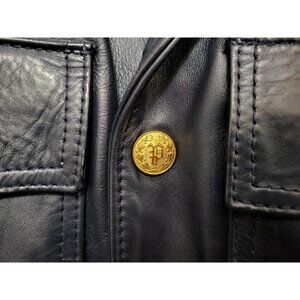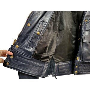 LANGLITZ Leather Jacket Classic Blue Police Motorcycle Riding Vintage 1980s
