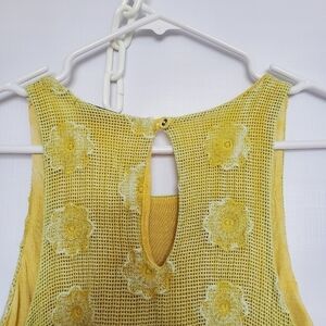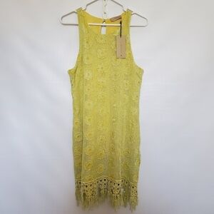 LANGUAGE DRESS SLEEVELESS FRINGE MUSTARD YELLOW EMBROIDERED FLORAL WOMANS ( XL )