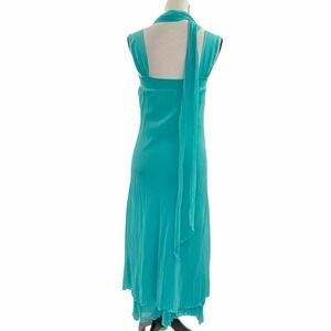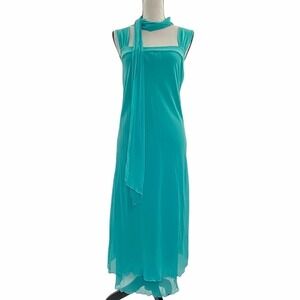 LANI Sleeveless Turquoise Blue Chiffon Layered Square Neck Maxi Dress w/ Scarf