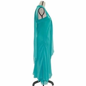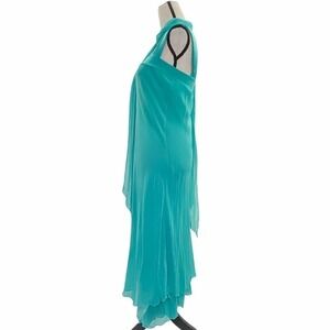 Lani Sleeveless Turquoise Blue Chiffon Layered Tiered Square Neck Maxi Dress Women's Size Large