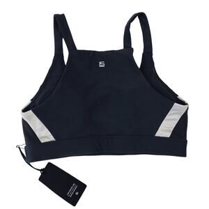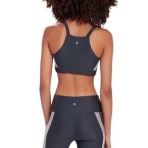 LANSTON Sport Bra Sz XS Gray Side Block Scoop Neck Racerback Sporty Preppy NWT