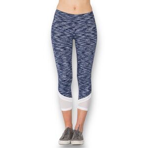 LANSTON Sports Women’s Mesh Bottom Cropped Leggings in the Size Large in Navy/White