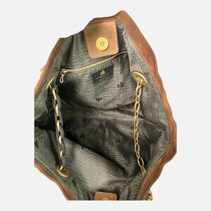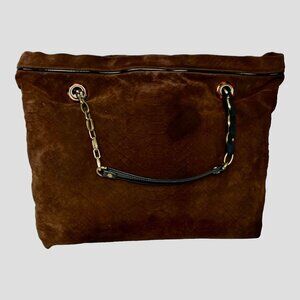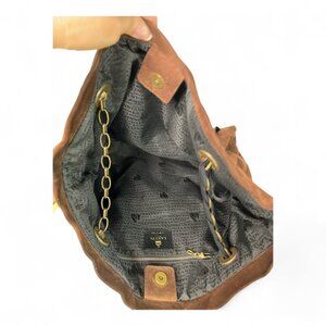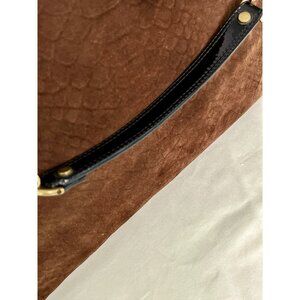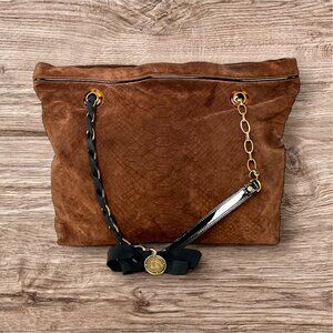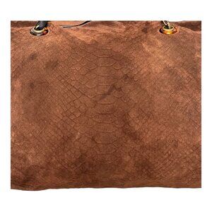 LANVIN "Amalia" Python Print Brown Suede Bucket Shoulder Bag made in Italy 13" H