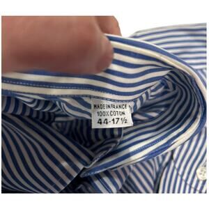 LANVIN CLASSIQUE Blue White Stripe Button Up Men's Size 17.5 44