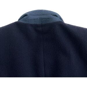 Gorgeous luxurious designer sport coat. There is NO size tag so the size is estimated from the measurements- please review them to ensure this will fit you. There is some wear to the leather on the buttons and the bottom back of the coat. Overall it presents very well and is gorgeous and soft!