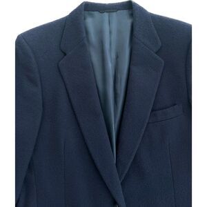 LANVIN PARIS Camel Hair Navy Blazer Sport Coat With Leather Buttons