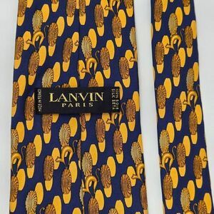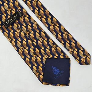 LANVIN PARIS SILK TIE BLUE GOLD GEOMETRIC CAT PATTERN SMOOTH 4" X 57"