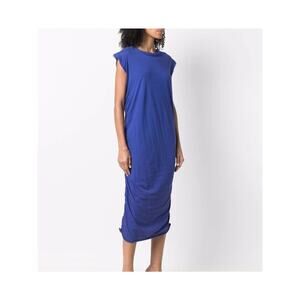 Elevate your designer wardrobe with this authentic LANVIN Paris blue ruched midi dress, crafted in an ultra-soft, luxurious silk-blend jersey. This stunning piece features Lanvin’s signature effortless drape, chic raw-edge fringe trim, and flattering side ruching that creates a beautiful elongated silhouette. Rare color, rare cut, and incredibly hard to find — a true collector luxury piece.