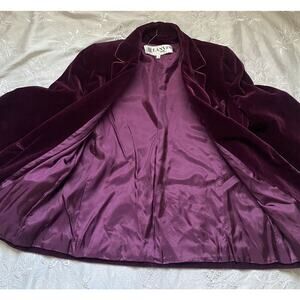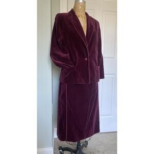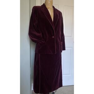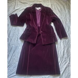 LANVIN Paris Vintage Skirt Jacket Women Suit Size 40 Velvet Velour Burgundy S,M