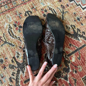 fits 8-8.5 ✨ super cute deep red/brown color with an elastic strap