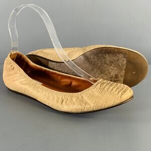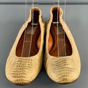 LANVIN Size 7 Gold Beige Embossed Ballet Flats