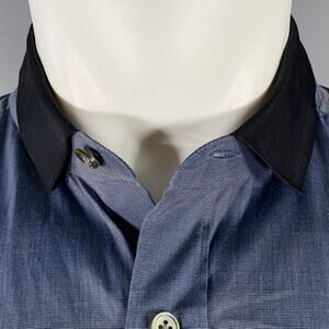 LANVIN Size M Navy Black Grid Cotton Button Up Long Sleeve Shirt