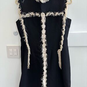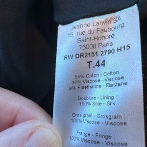 Lanvin black and tan crêpe embellished midi dress. Size 44. Fits like a size 8. Sleeveless. Back zipper. Great condition. Length is 35 inches, waist is 34 inches inches, and bust is 36 inches. Classic beautiful dress.