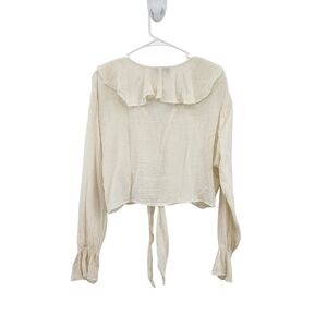 LANY Women's 100% Cotton Vintage Ruffle Front Tie Crop Top - M