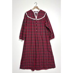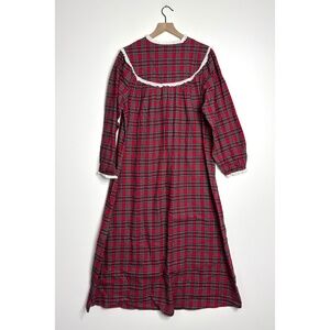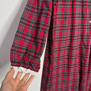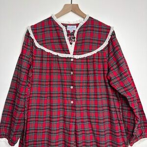 - Keywords: long sleeves, tartan, flannel, long length, eyelet lace trim, red plaid