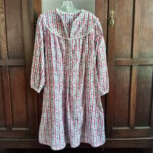 LANZ of SALZBURG Flannel Nightie PLUS SZ 1X 2X Floral Print Cotton 1/2 Button