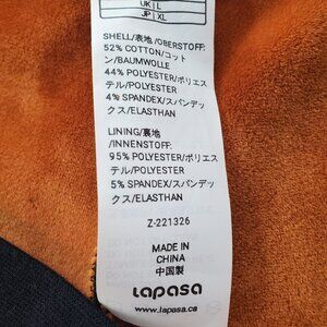 Shell: 52% cotton, 44% polyester, 4% spandex; Lining: 95% polyester, 5% spandex