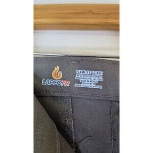 The LAPCO FR Dark Gray Work Pants for men in size 36x34 are flame-resistant utility workwear pants designed for various occasions such as travel, casual wear, work, and business meetings. Made from durable canvas fabric with a mid-rise, these pants feature a classic chino style with a flat front and straight leg design. With features like flame resistance, easy care, comfort, and pockets, these pants are perfect for all seasons and offer a breathable and stylish option for men looking for reliable workwear. The brand Lapco FR ensures quality and safety for the wearers, making these pants a practical choice for those in need of durable and protective clothing. Length 46 in. Rise 13 in.