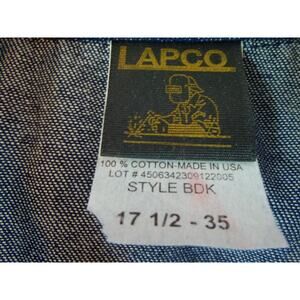 LAPCO Shirt Shacket Men's Large Vintage 90s Pearl Snap Duck Canvas USA Sz 17.5-35 armpit to pit" 25.5 L32.5 very good condition see photos for details