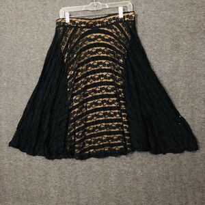 LAPIS A-Line Skirt Womens XL Sheer Lace Overlay Chic Black Elastic High Waist
