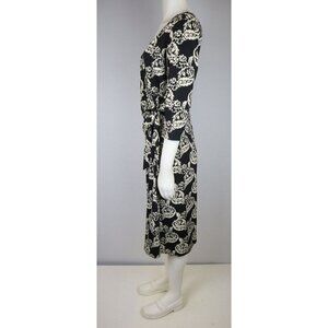 LAPIS - WOMEN'S BLACK & CREAM PRINT 3/4 SLEEVE STRETCH KNIT WRAP DRESS - SIZE M