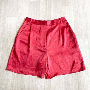 LAPOINTE Pleated Crinkled Satin Shorts Raspberry Size 6 NEW NWT