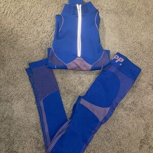 New w/o Tags. Super cute LAPP Compression work out set. Seamless 1/2 zip jacket is super soft and stretchy long sleeve with 3m zip detail and ventilation system under the breast. When paired with the leggings the contour lines create a unified silhouette.