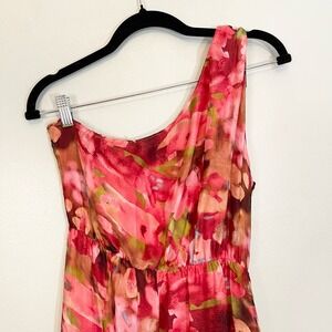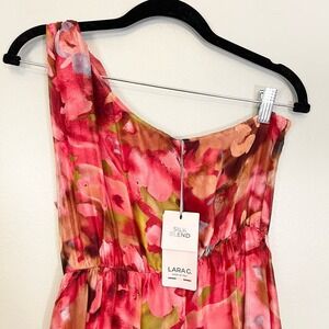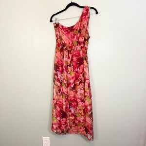 LARA G Womens Red Fuschia Silk Blend Floral One Shoulder Midi Dress Medium NWT