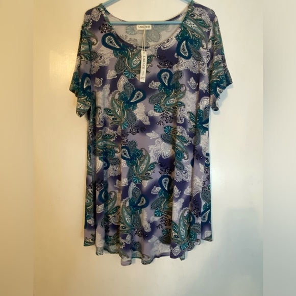 Women’s size 2X purple lavender and teal colors so soft to feel 24 in. Pit to pit 32 in. Length new with tags