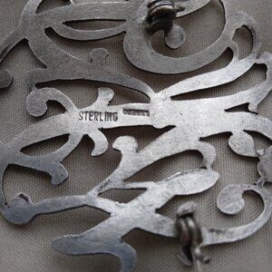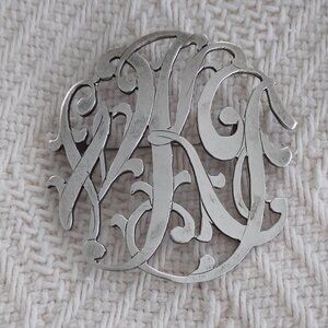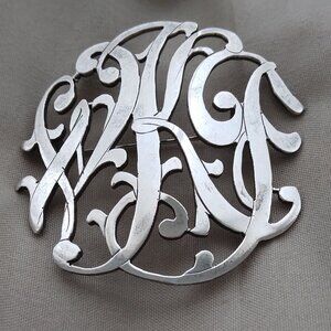 Vintage monogram brooch, meticulously cut Laredo sterling silver. Measures 2" x 2". Wear it if it matches your initials or simply for the beautiful scrollwork design.