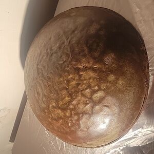 LARGE 15", Hand Hammered Metal Rolled Flattened Edge Bowl, Brown, 4" deep, rounded bottom