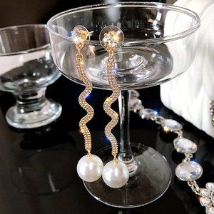 LARGE! 925 Silver Crystal Gold Pearl Stud Earrings