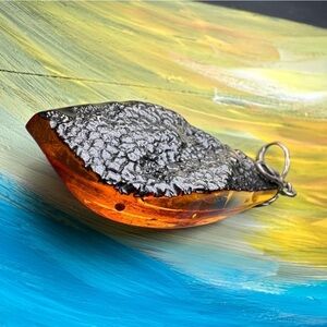 LARGE AMBER PENDANT MADE OF FREE FORM AMBER WITH BITS OF FLORA