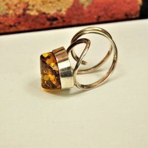 IRREGULAR BALTIC AMBER and STERLING SILVER WRAP AROUND STYLE RING.