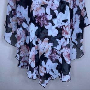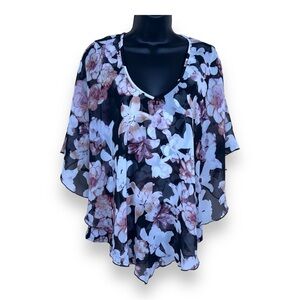 LARGE BLACK PINK FLORAL FLOWY TOP LINED VNECK SHORT SLEEVE